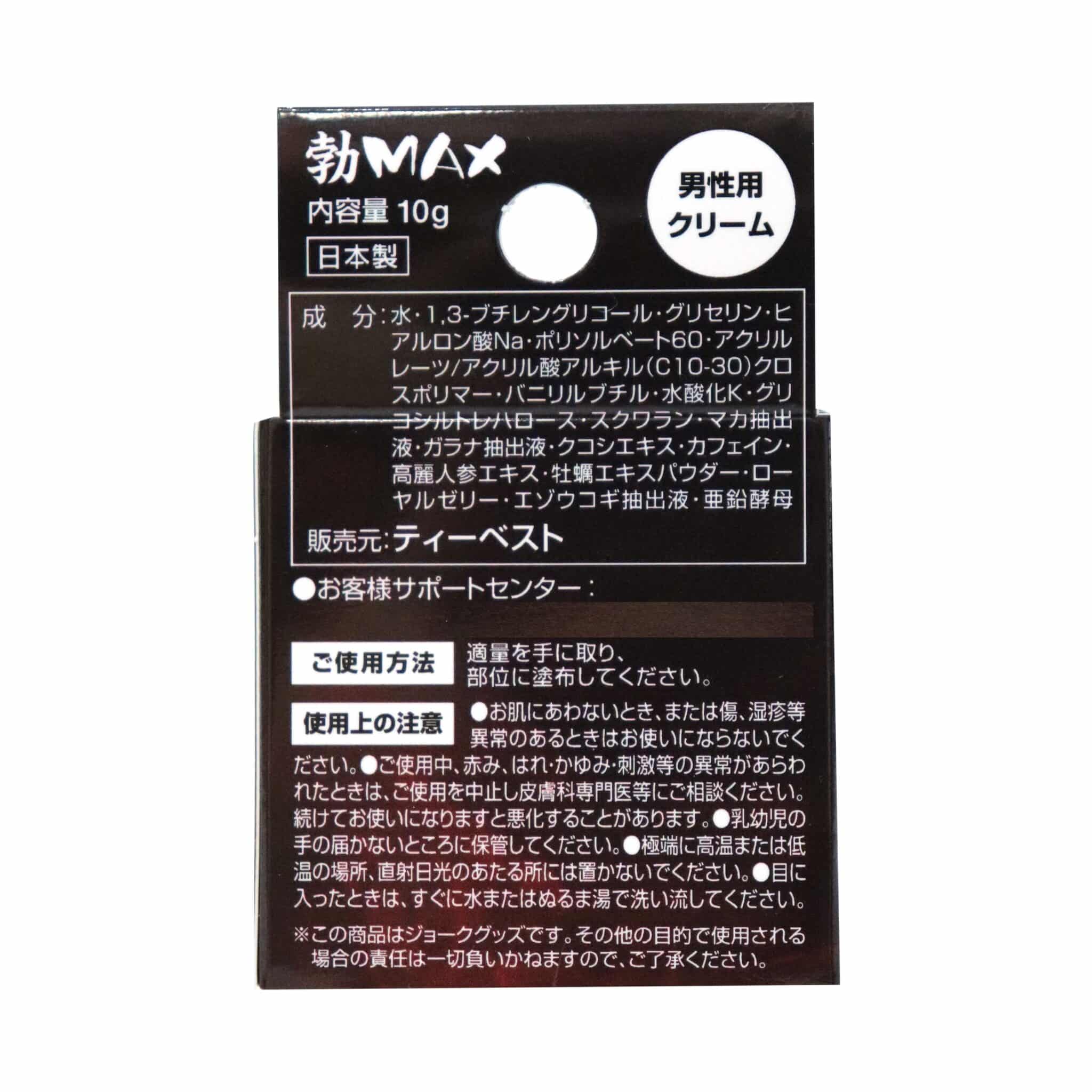 This erection enhancement cream contains the natural ingredients of maca and guarana extracts. Maca extract has a stimulating effect on sexual function, while guarana extract gradually and slowly stimulates nerves for a longer duration and a gentler effect. Both ingredients can improve erectile dysfunction and increase male sexual desire, offering aphrodisiac effects. Massage into the cream for better absorption, resulting in a harder, longer-lasting erection, helping you regain your virility and strength. Made in Japan, safe to use.