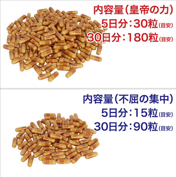 [Ingredients: Emperor’s Power] L-Citrulline (Made in Indonesia), Dextrin, Fenugreek Seed Extract Powder, Maca Powder, Mucuna Prawn Powder, Akagaukurua Powder, Dextrin, Eleuthero Extract Powder, American Ginseng Powder, Selenium-Containing Yeast, Leek Seed Powder, Sea Snake Powder, Red Viper Powder, Cordyceps Mycelium Powder, Ginger Extract Powder, Fish Collagen (Contains Gelatin), Ant Powder, Soft-Shelled Turtle Extract Powder, Maca Extract Powder, Seahorse Extract Powder / L-Arginine, Gelatin, Calcium Stearate, Coloring (Caramel) [Ingredients: Unyielding Focus] Dextrin (Made in Japan), Galangal Extract (Galangal Extract, Dextrin) / L-Arginine, Gelatin, Caffeine Extract, Calcium Stearate, Coloring (Caramel), Microcrystalline Silicon Dioxideadditional information