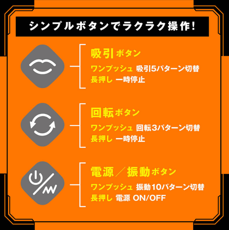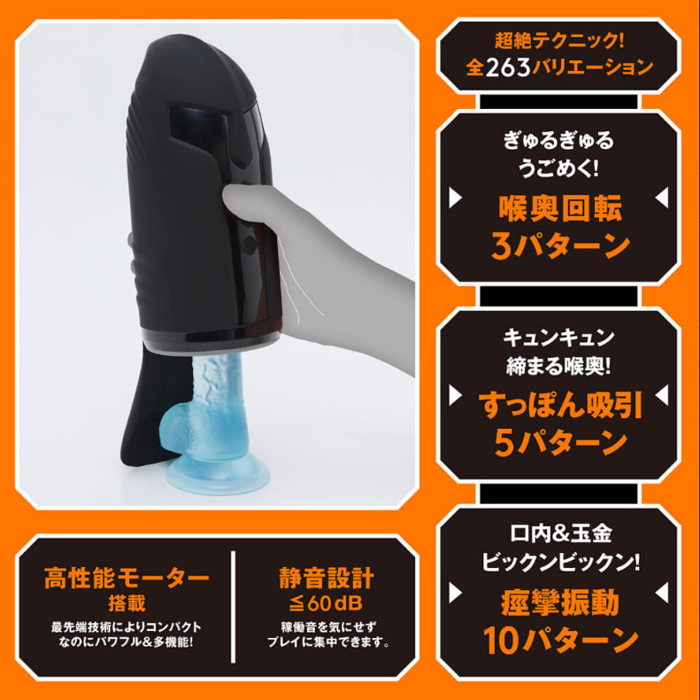 Five patterns of powerful suction & ten patterns of intense, pulsating vibration for the glans – a total of 263 variations of incredible techniques!