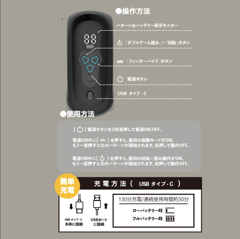 The “I can’t possibly finish without rubbing!!!” has been powered up. In addition to kneading and vibration, rotation has been added. It can be used in various ways depending on your ideas!